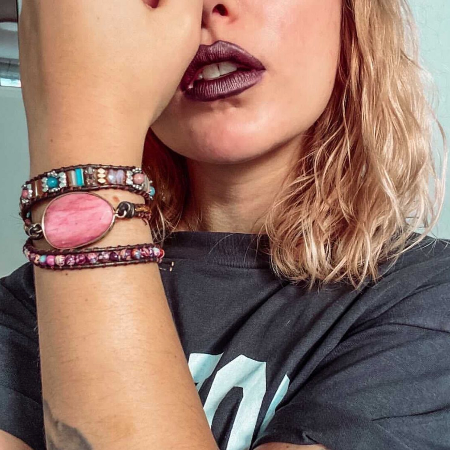 Healing Rhodochrosite Wrap Bracelet | Boho | 100% handmade